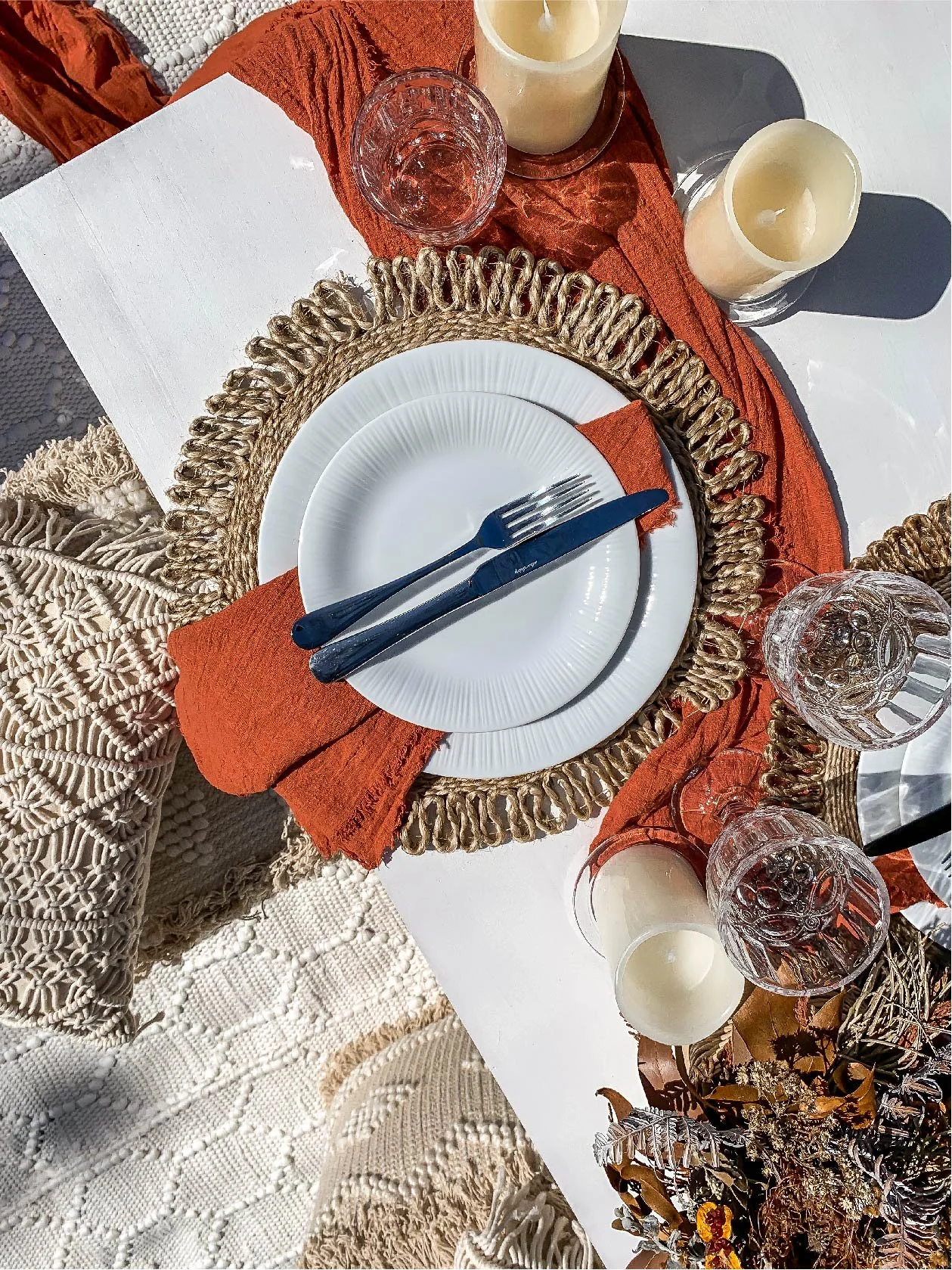 We can provide everything from the rugs, cushions, cutlery & crockery, decor, cushions and more! We don’t provide food or drinks, but we are happy to help you source them for an additional cost.